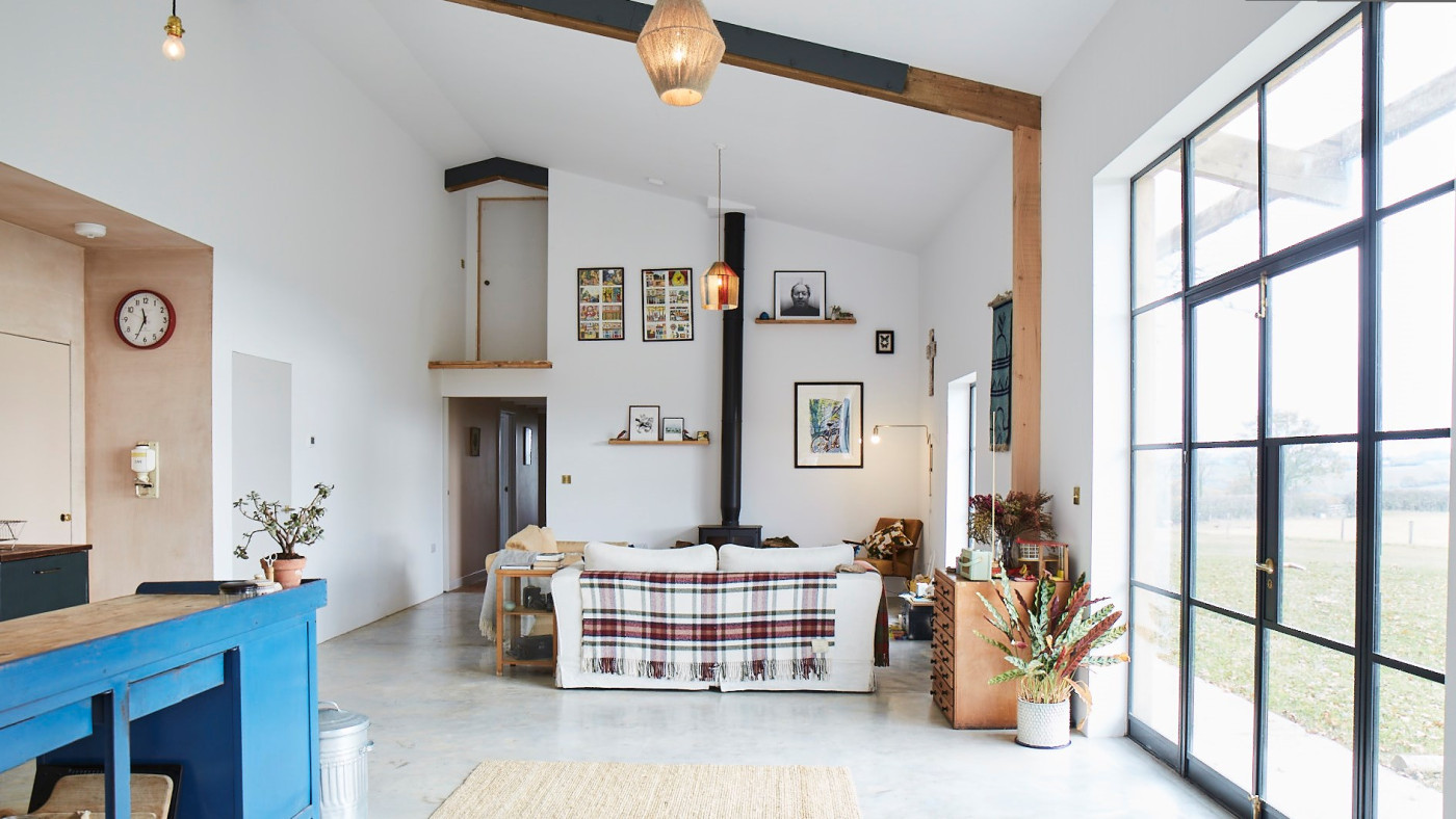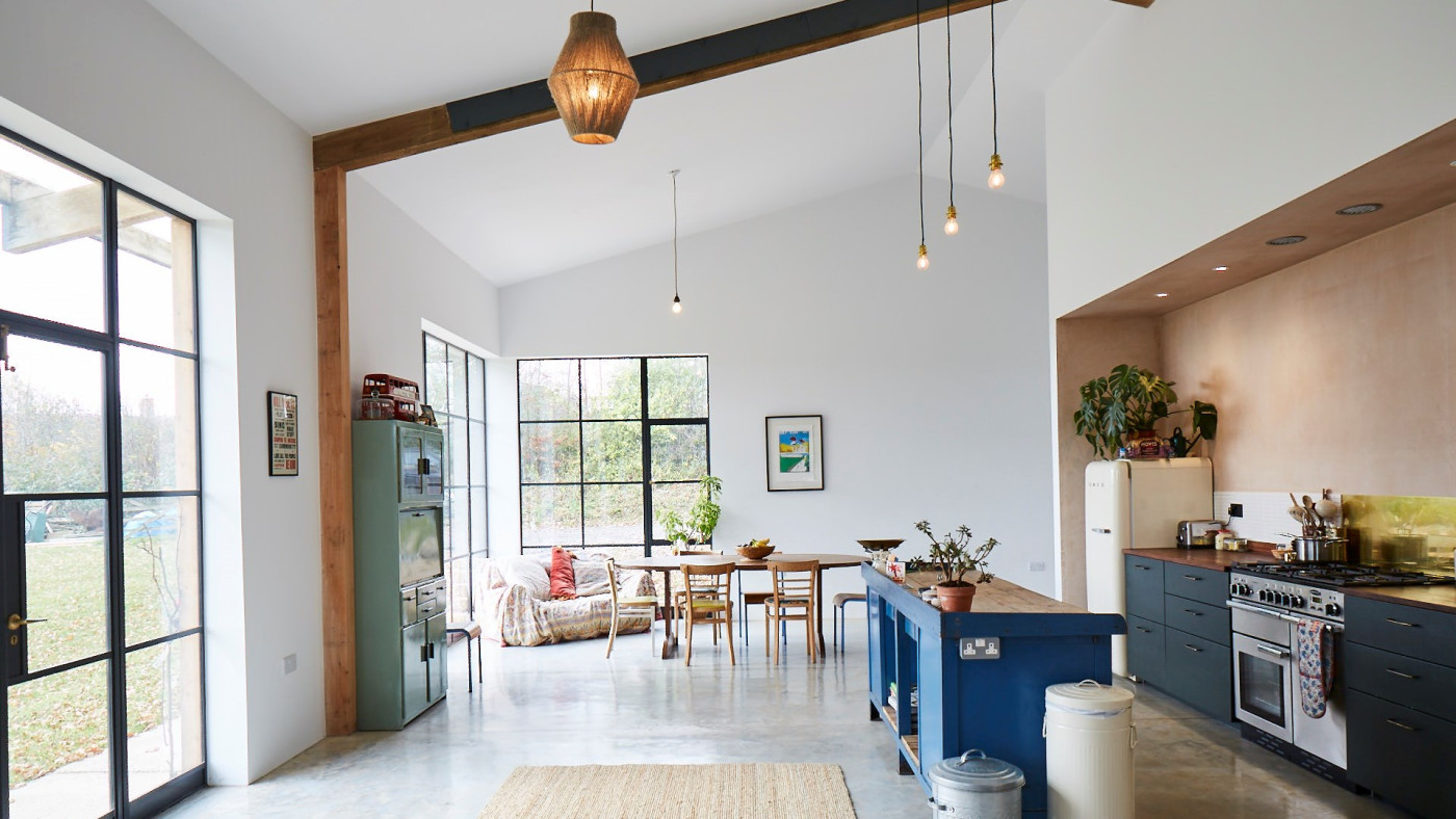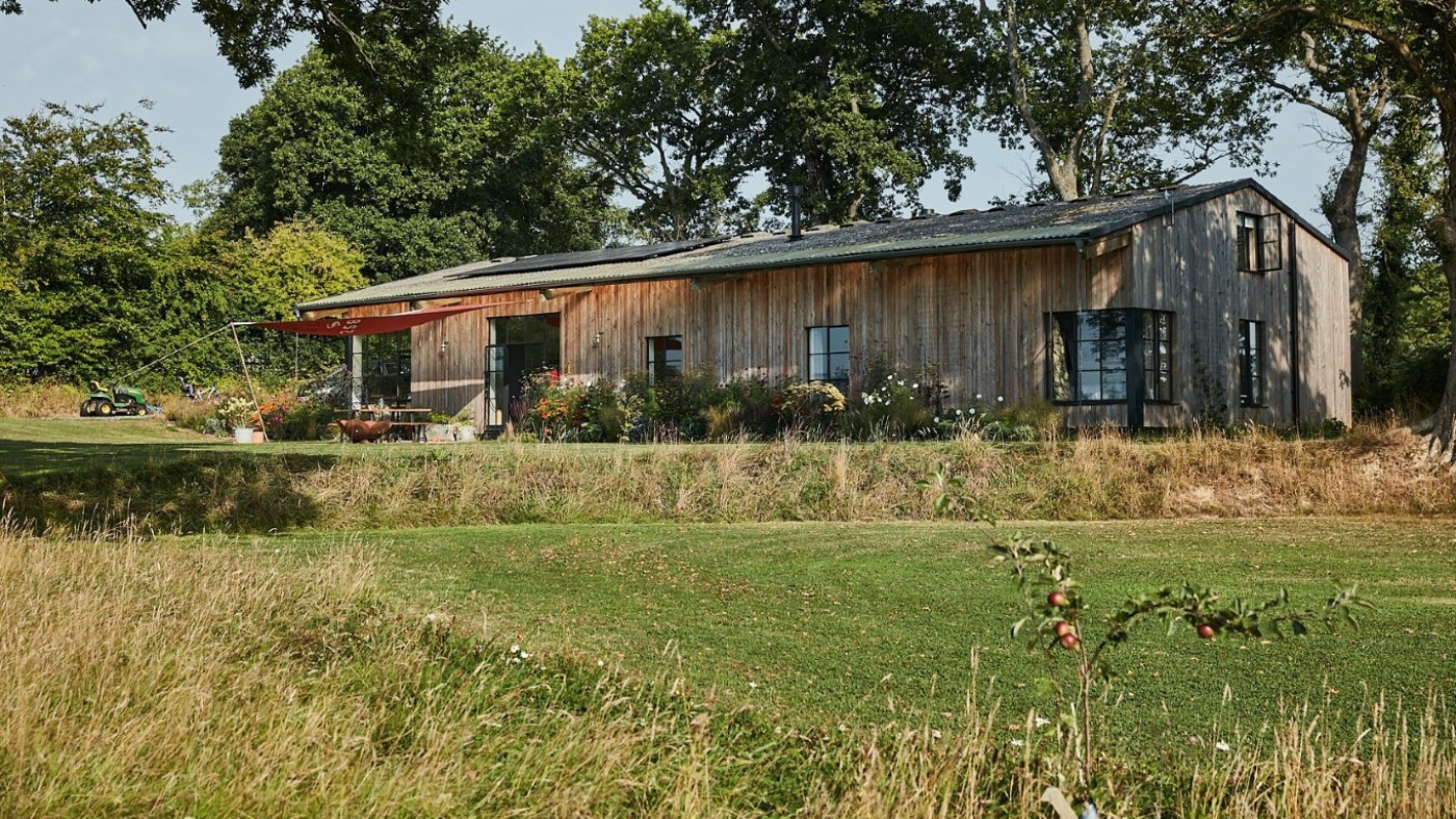 Taking advantage of Class Q planning legislation the conversion of this 15 year old Devon barn was completed in only 10 months. The corrugated cement sheet roofing, timber frame and concrete ground slab stayed in position, allowing for the fast installation of new timber framed walls and larch cladding. Reflective multifoil insulation gives a massive 92% energy rating—substantially exceeding current building regulations requirements.