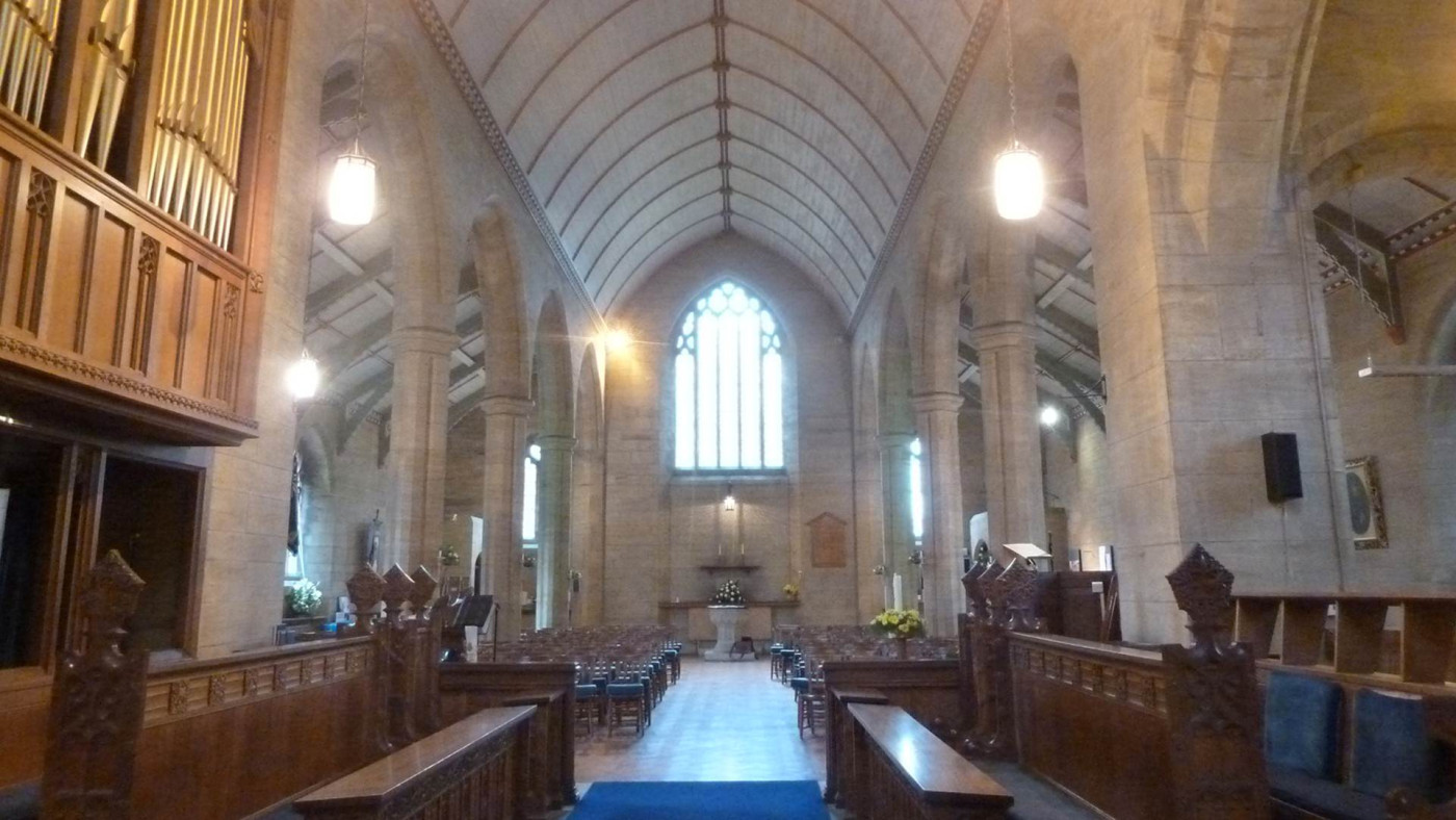 The church was built by Nicholson and Corlett 1911-1913 and although of solid masonry construction, the walls are thinner and detailing less massive due to the use of cement in the masonry.