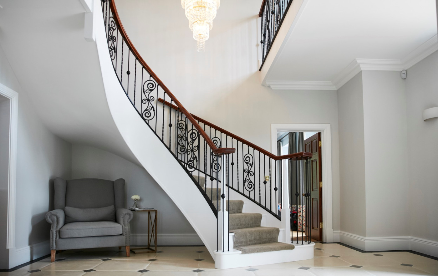 The curved staircase is the focus of the spacious entrance hall; dormer windows in the attic allow for use of the second floor for further accommodation; and an open plan kitchen /dining / living space, flooded with light from bifold doors, forms the hub of the home.