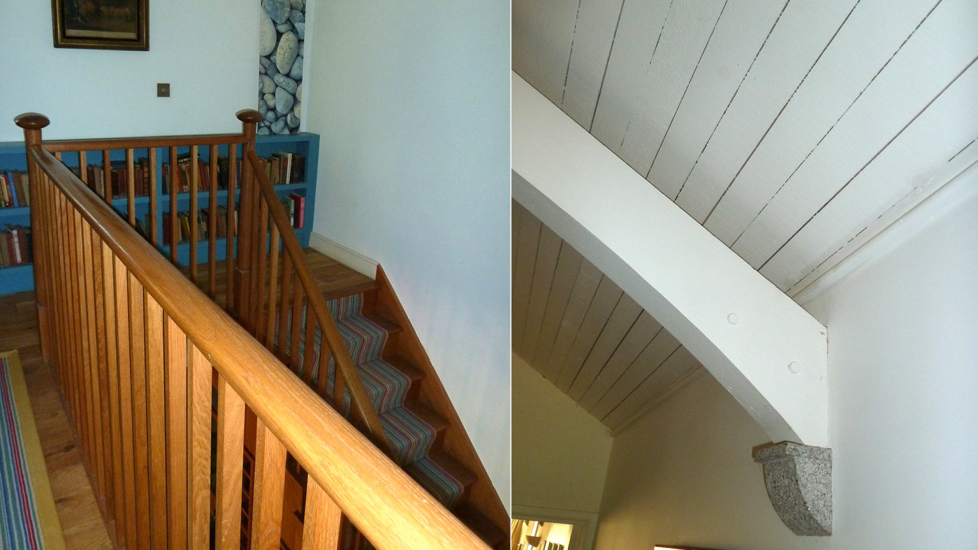 New five bedroom family holiday house, making the best of the sea views with full basement with gym, games room, bar and utility room, ground floor with bedrooms and kitchen/dining room and 30 ft long, first floor sitting room with vaulted ceiling and a projecting balcony overlooking the view. Finished internally with good quality oak floors, cedar doors and simple plastered walls.
